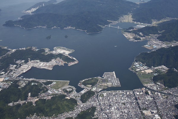 舞鶴港は、日本海側のほぼ中心部、若狭湾に面した京都府北部に位置しており、静穏で潮位差が小さい天然の良港であり、古くは軍港として、戦後は商港として利用されています。近年は高速道路網の進展を受け、国際海上コンテナ、国際フェリー、国際RORO船、外航クルーズ(背後観光地クルーズ)の拠点形成に向けた強化を図っています。