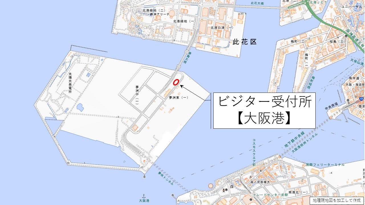 ・「受付証」の発行申請手続きは、神戸港と大阪港のどちらの「ビジター受付所」でも利用可能です。